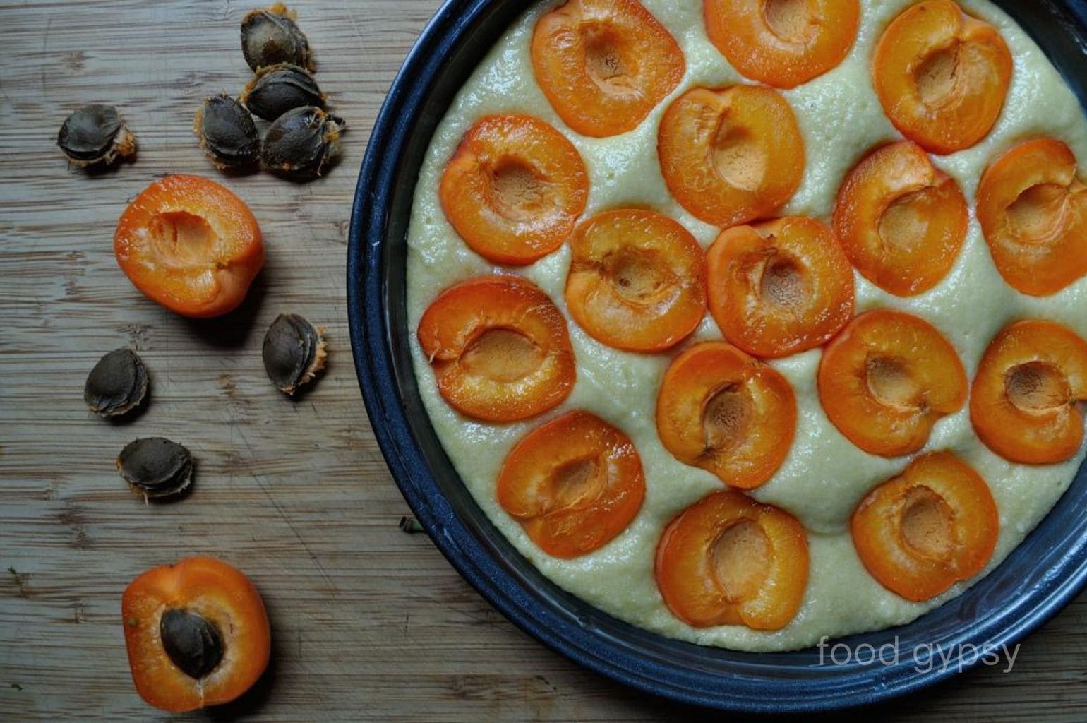 Add both almond and all-purpose (or gluten free flour), beating… in case you didn’t guess… until JUST smooth. Don’t overwork your batter (see notes above). Pour batter into your prepared pan. Place apricots, on cake, fitting as many on the surface as it can hold.