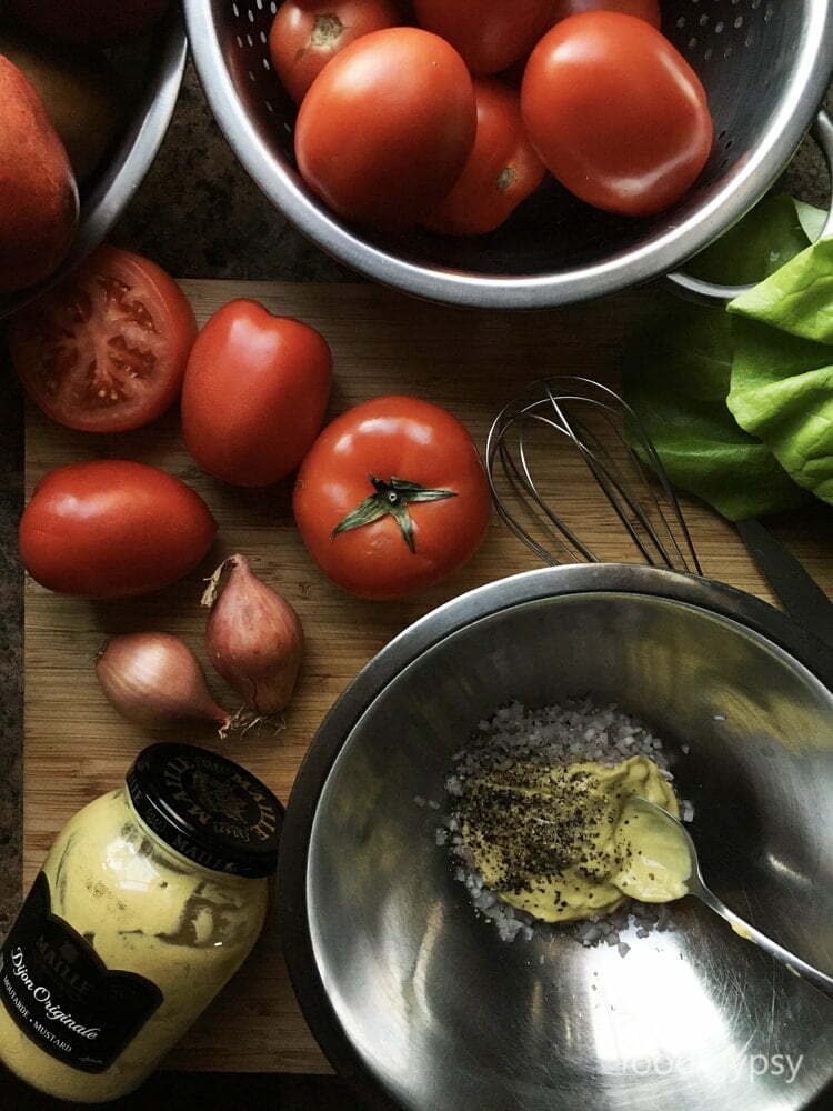 Mustard Vinaigrette is our number one salad dressing in the summer and year-round. I’ve featured many types of vinaigrette on Food Gypsy over the years depending on the salad and flavour direction. Citrus Vinaigrette, Honey Lime Vinaigrette, andSesame Asian Vinaigrette are all terrific, but this is our constant stand-by.